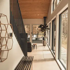 Ce plan est la maison la plus spacieuse que nous ayons conçue. L'aménagement des espaces communs permet une circulation fluide et ses 5 chambres favorisent l'accueil de nombreux invités. Le mur de fenêtres sans fin laisse entrer la lumière naturelle sur deux côtés et ouvre la maison sur l'extérieur. Vous serez rapidement invité à vous rendre sur le patio pour profiter du spa, du sauna ou pour vous réunir autour du feu. L'équipe de Plan Zen est fière de vous proposer ce plan pour votre prochain projet.